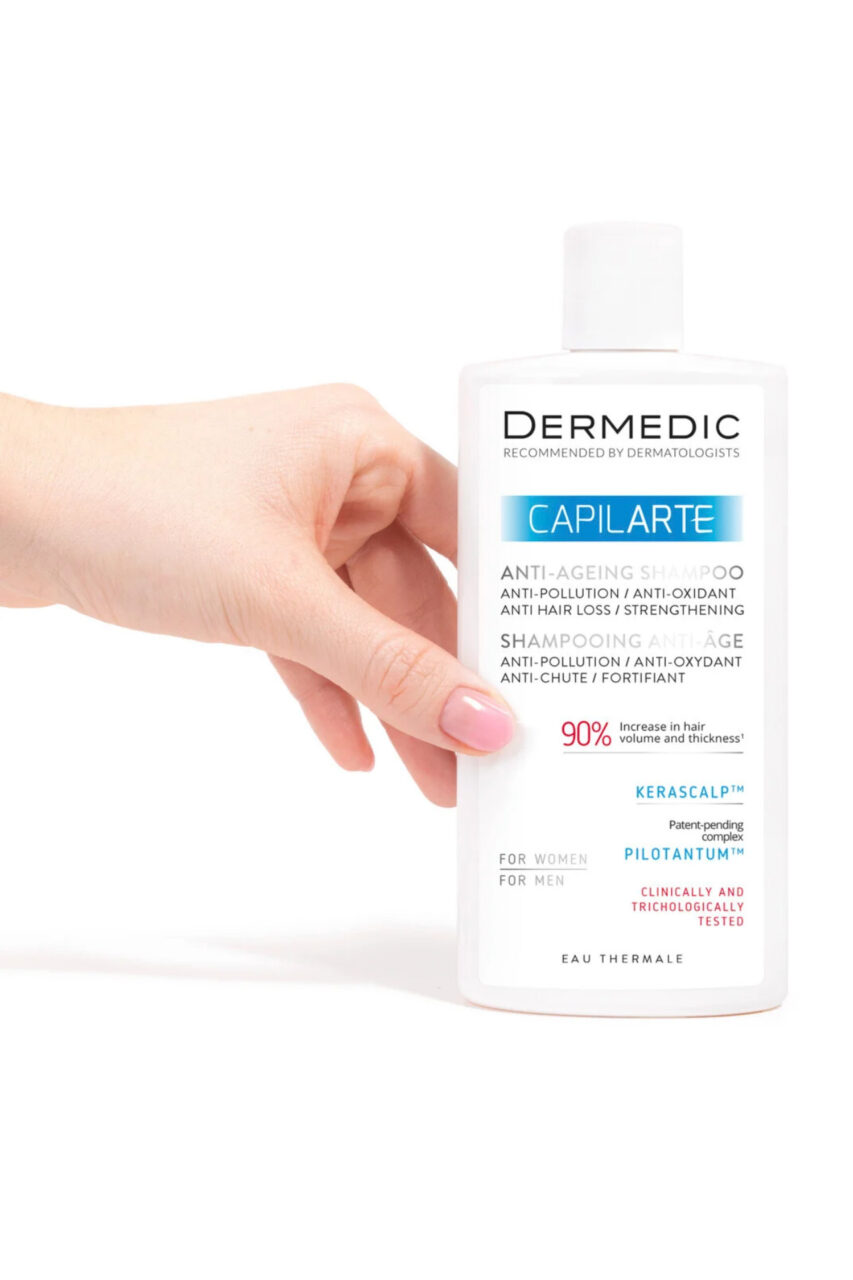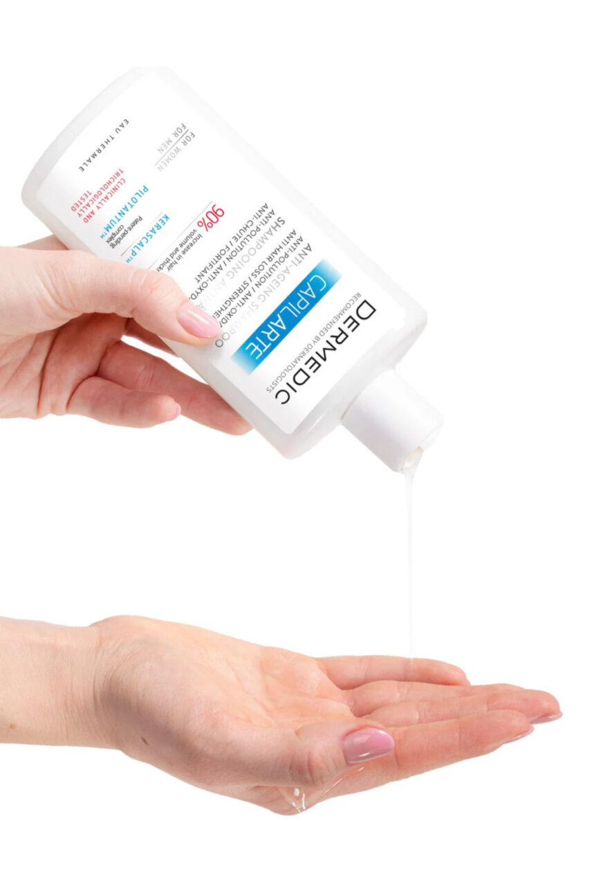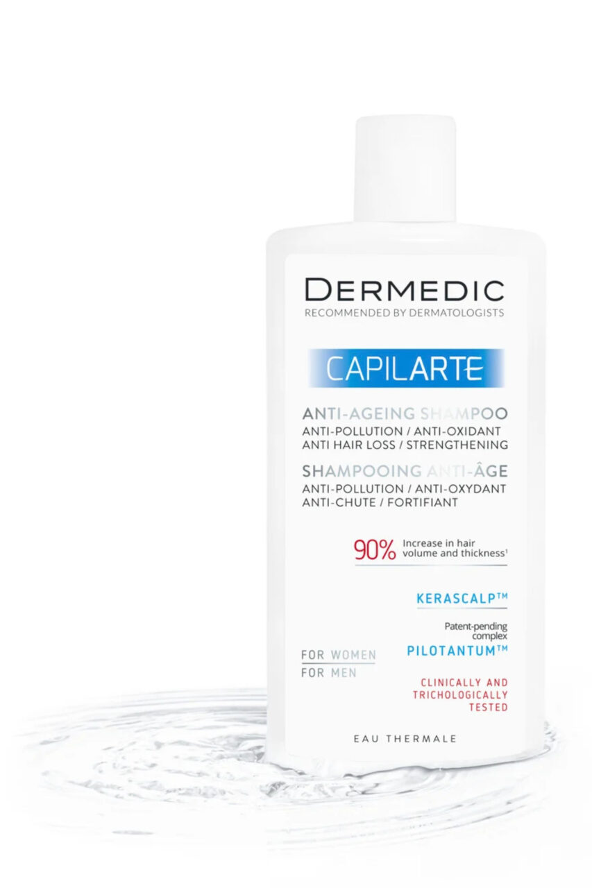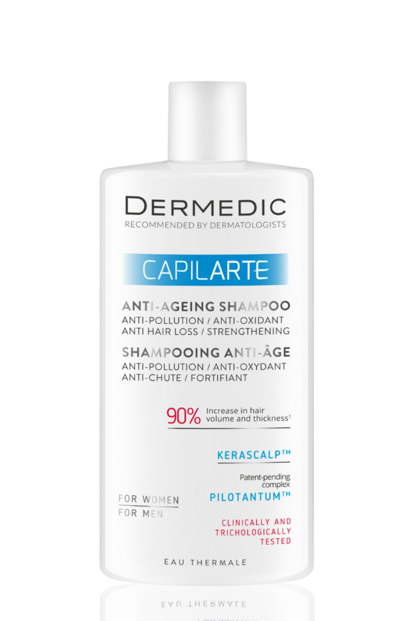 Capilarte Anti-Ageing Shampoo has a broad spectrum of action, combating signs of ageing in the hair follicle and shaft. It prevents the degradation of stem cells and the miniaturization of hair follicles, thereby counteracting hair loss, thinning, and weakening of the hair shaft structure. Additionally, it slows down the greying process. The shampoo contains the patent-pending innovative Pilotantum® complex, which, when combined with synergistically complementary antioxidants, protects hair follicles from the accumulation of DNA damage caused by oxidative stress.